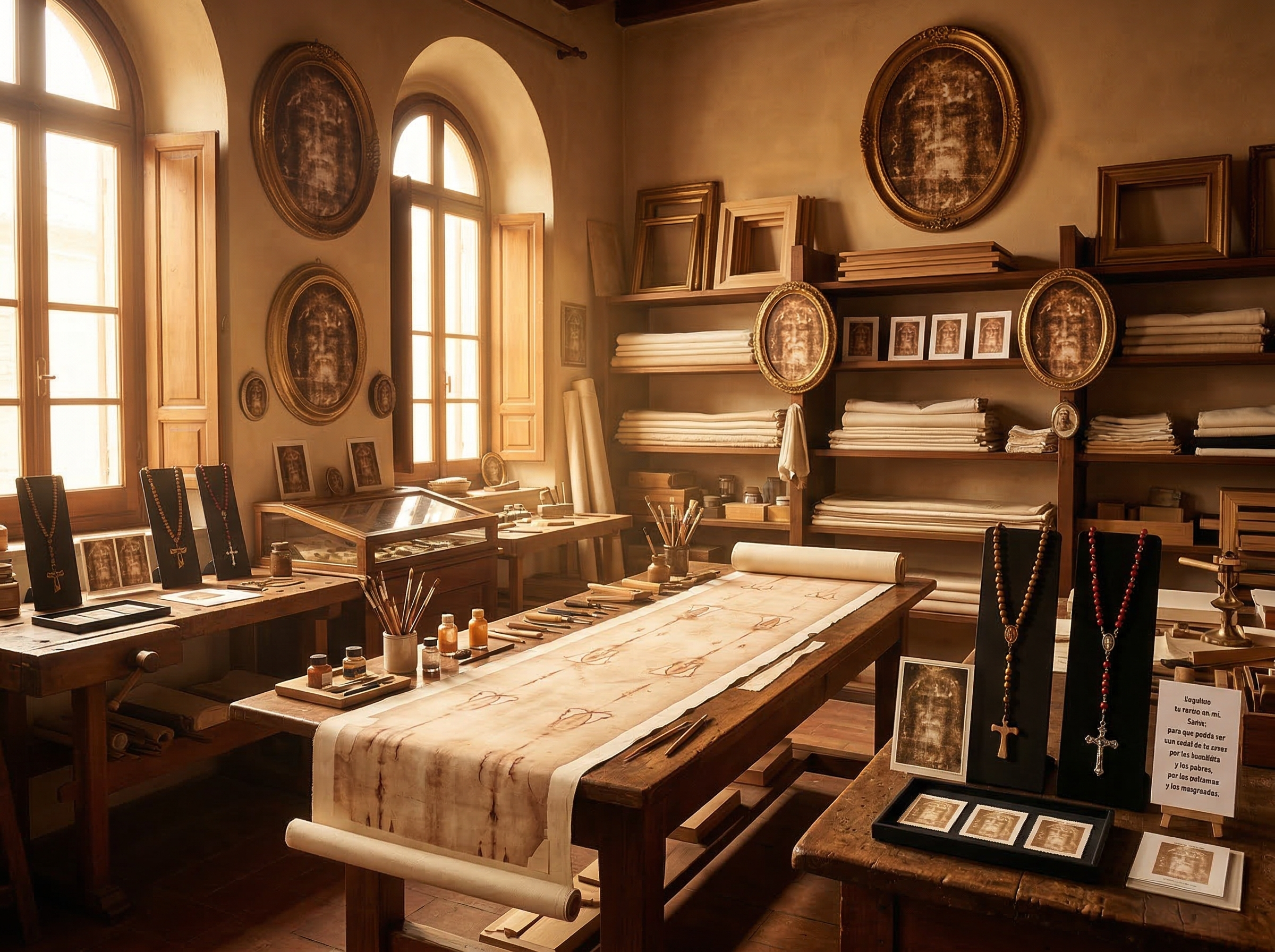 Riproduzioni fedeli della Sacra Sindone e del Santo Volto in tessuto pregiato.