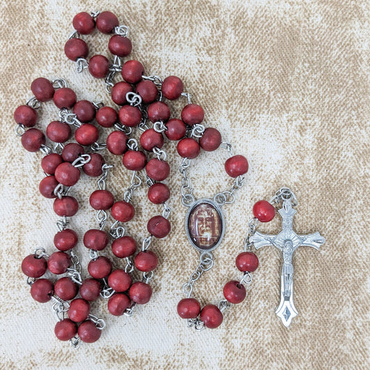 Rosewood Rosary with Holy Face Tablet and Prayer Card